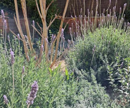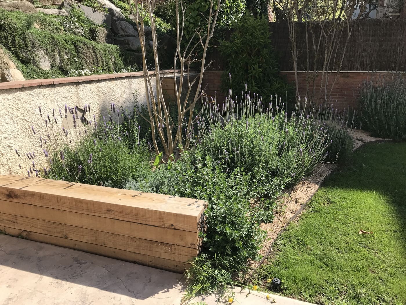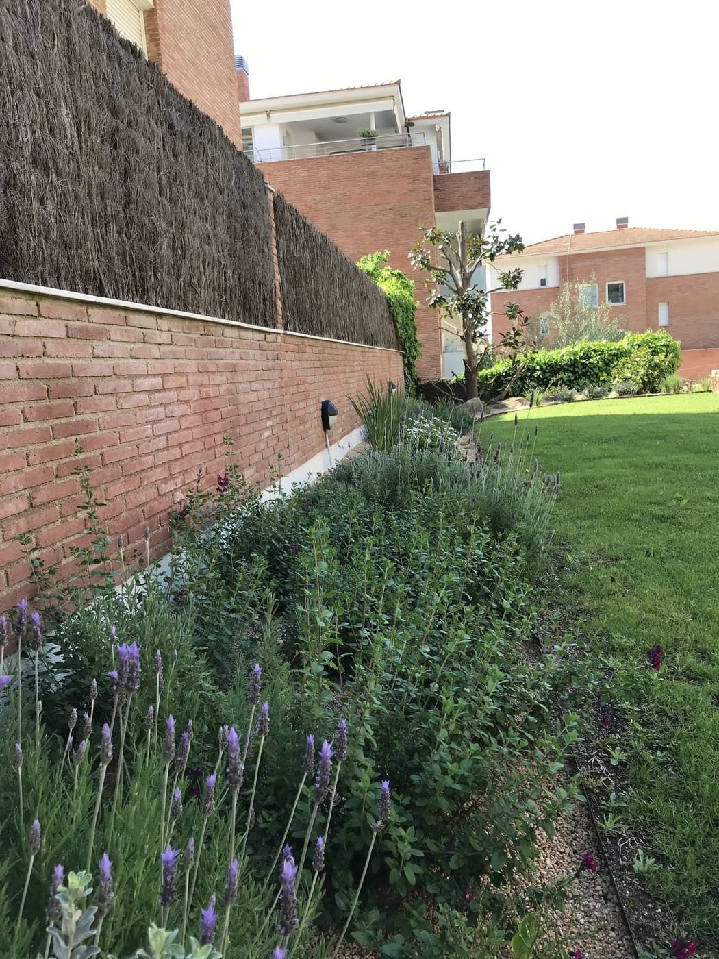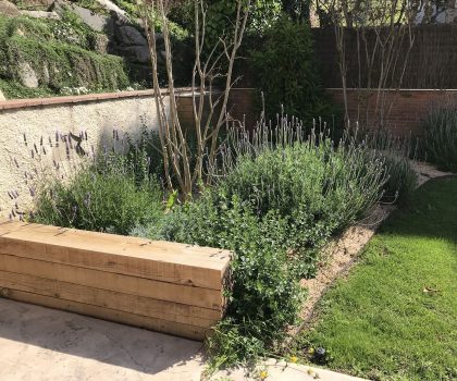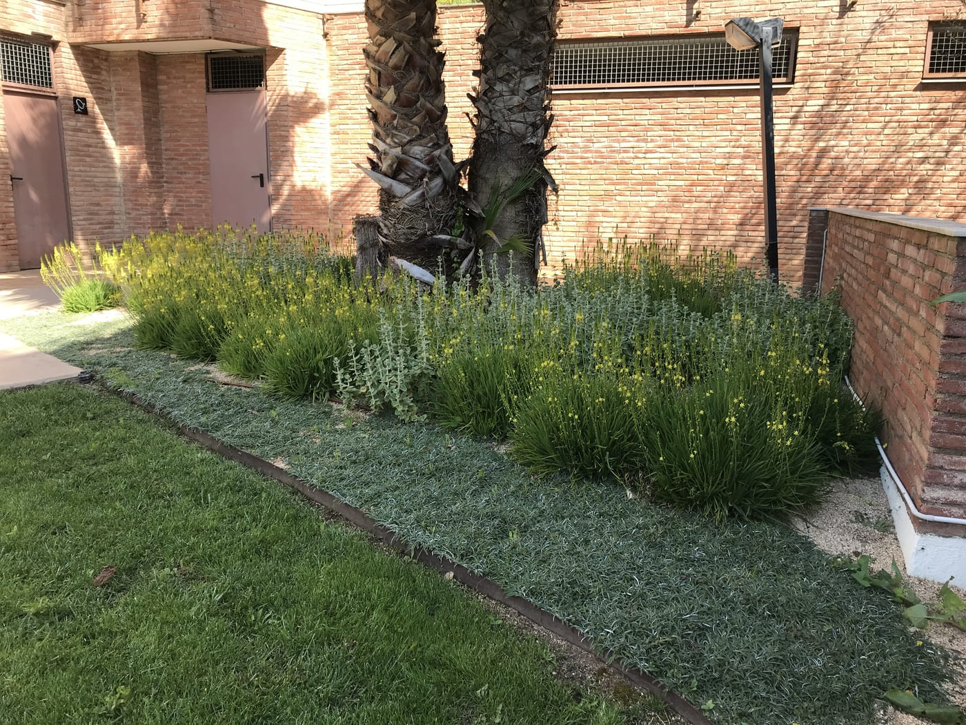 Enjardinament d’un jardí comunitari per tal de reduir la superfície de gespa a la zona de les piscines i crear punts d’interès i estada. Es fa una plantació diversa en tot l’entorn de la piscina.